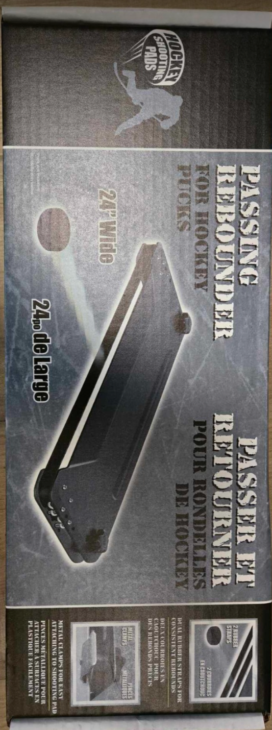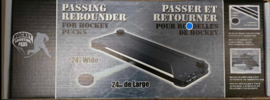 Our rebounders are made of Canadian steel and aluminum. They clamp directly to the pads and creates a bounce back effect. This device helps you to improve passing, receiving, timing and quick accurate one-timer shots.
